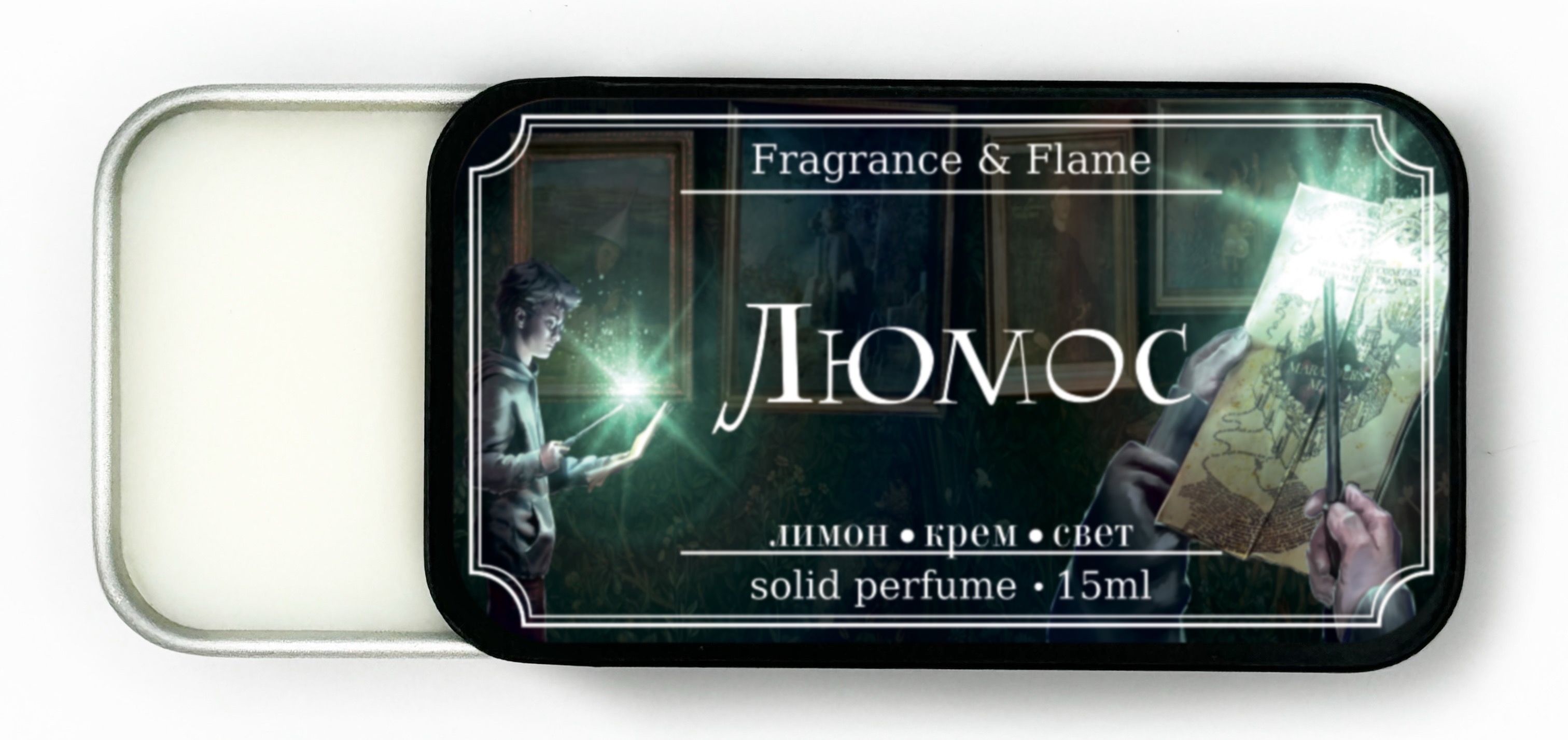 Твердые духи “Люмос” от Fragrance & Flame — аромат света, чистоты и вдохновения, созданный по мотивам волшебного заклинания из мира Гарри Поттера. Этот твердый парфюм словно произносит: “Lumos!” — и мгновенно зажигает внутренний свет, прогоняя тьму и усталость.