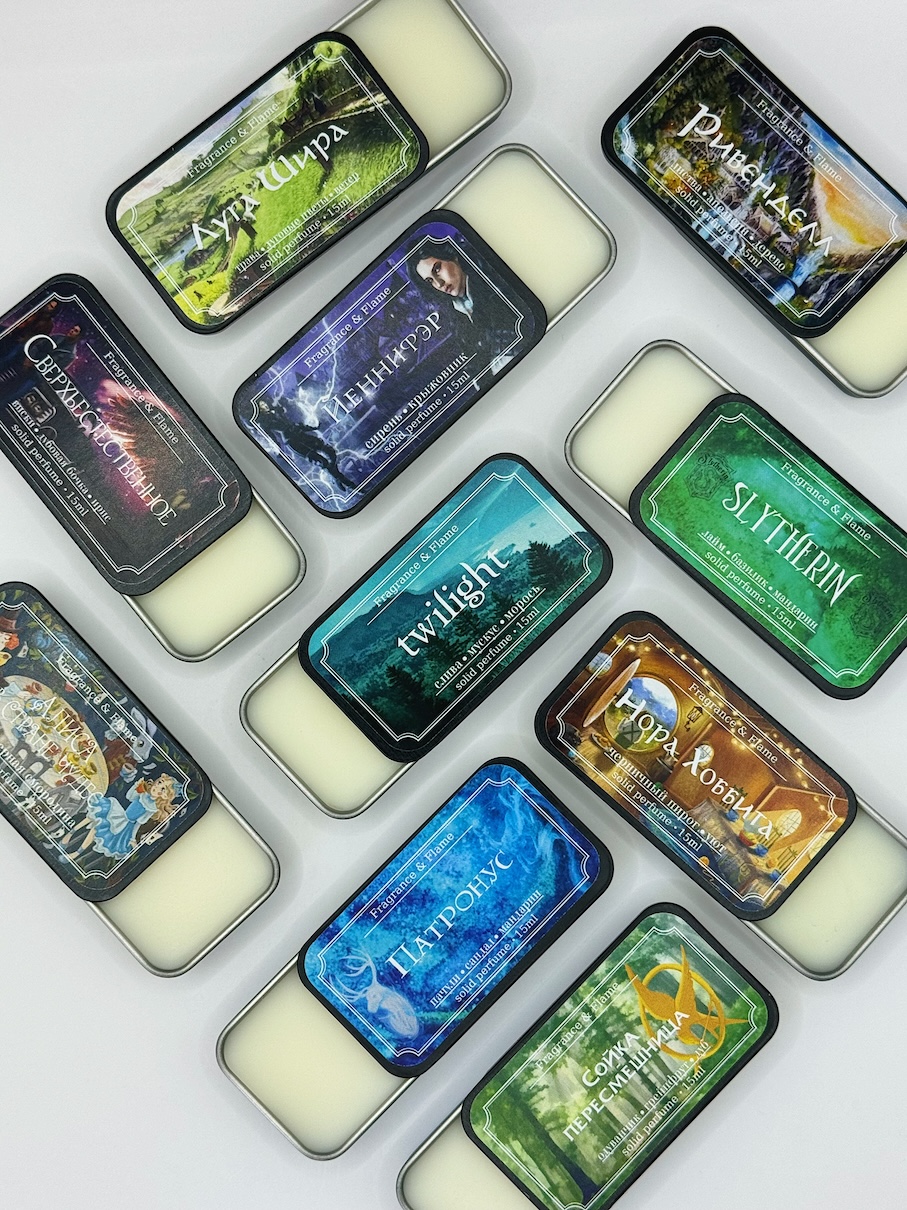 Эти сухие духи ручной работы изготовлены из натурального пчелиного и кокосового воска, масел жожоба и макадамии, с добавлением ароматических композиций премиум-класса без фталатов и парабенов. Компактная упаковка позволяет всегда иметь магию аромата под рукой — в кармане плаща, сумке или книжной полке путешественника.