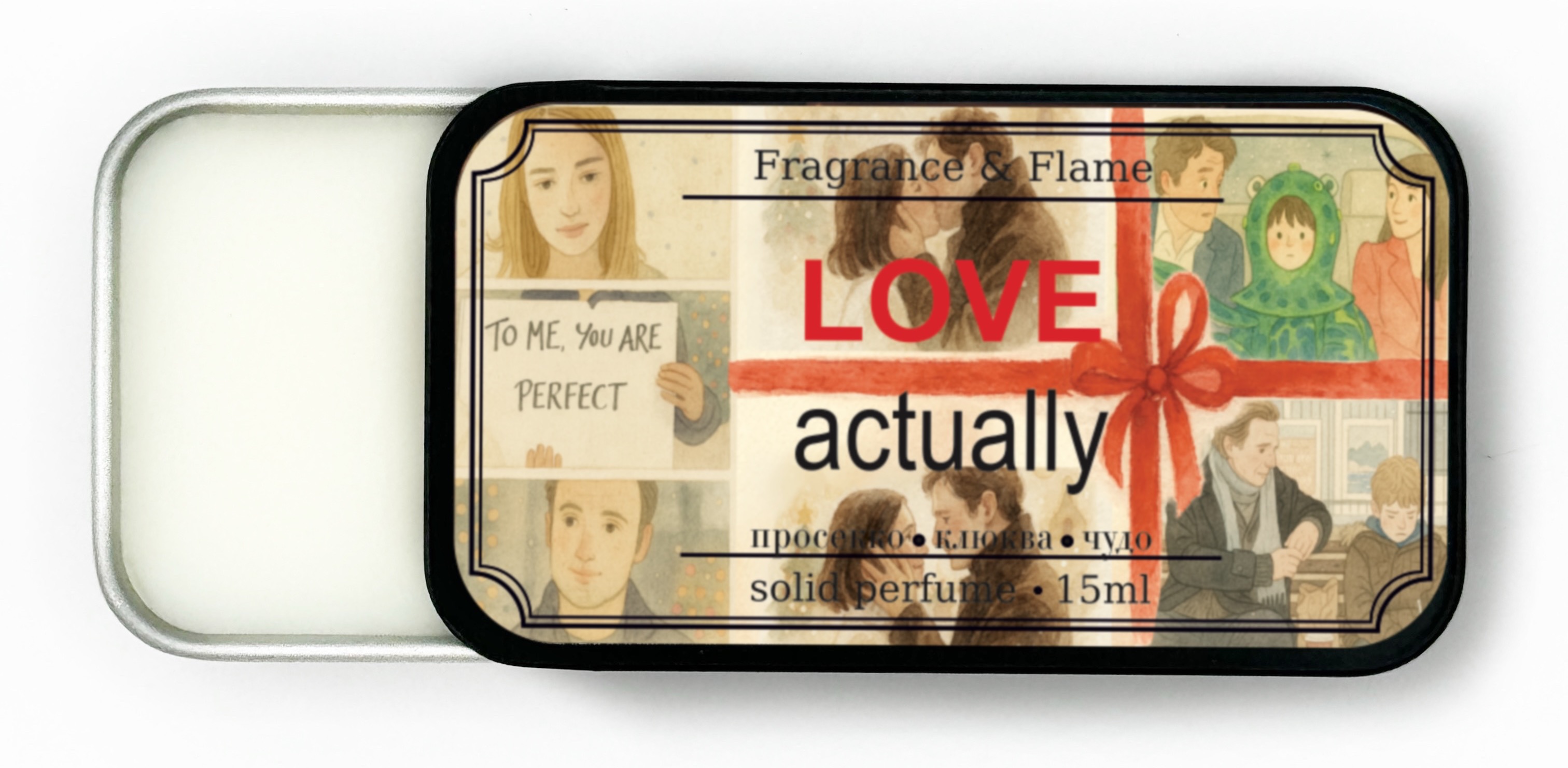 Твердые духи “Реальная любовь” от Fragrance & Flame — это аромат праздничного настроения, нежности и настоящих чувств, вдохновлённый культовым рождественским фильмом Love Actually. Этот твердый парфюмсловно кадр из любимой сцены — лёгкий, искренний и наполненный чудом.